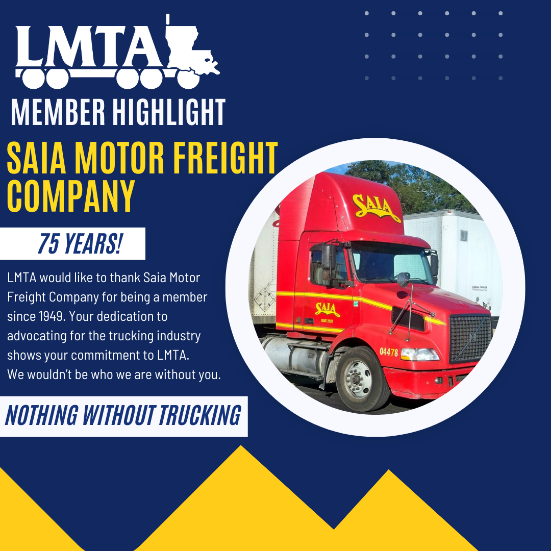 It is with great pleasure that we extend our heartfelt gratitude to Saia Motor Freight Company for being a dedicated member of the Louisiana Motor Transport Association for 75 years!