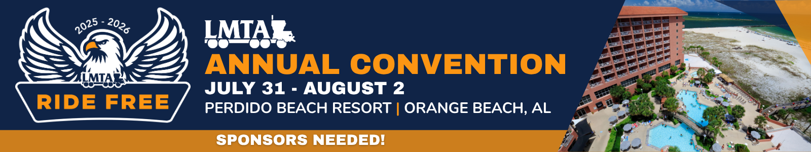LMTA has secured a special room block at the Perdido Beach Resort for convention attendees. The exclusive room block booking link is only available in the confirmation email sent after registering for the event. Be sure to register early to secure your accommodations. The room block will close on July 2.