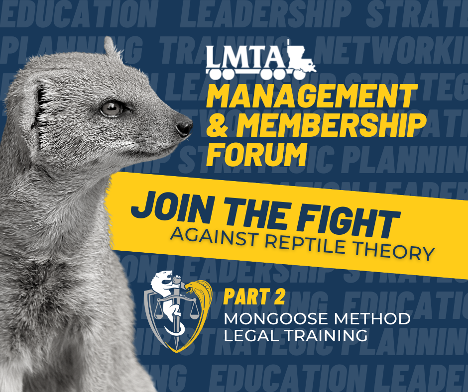 Many companies in our industry are facing an existential threat from abusive lawsuits. Trial lawyers, such as the "Academy of Truck Accident Attorneys," have weaponized the courts with Reptile Theory.